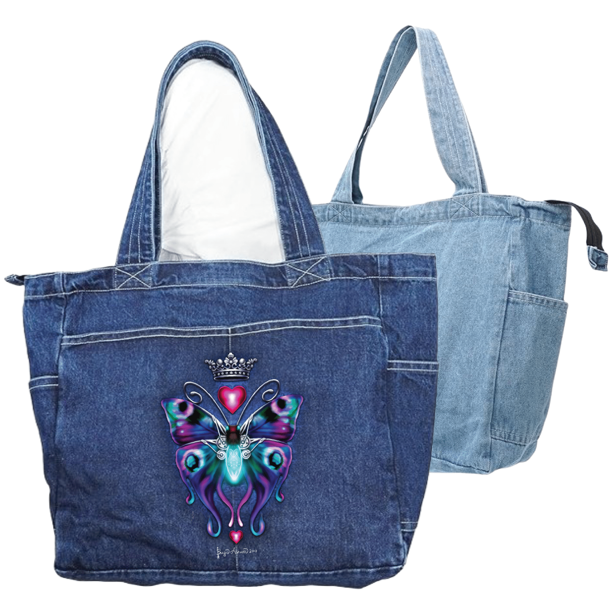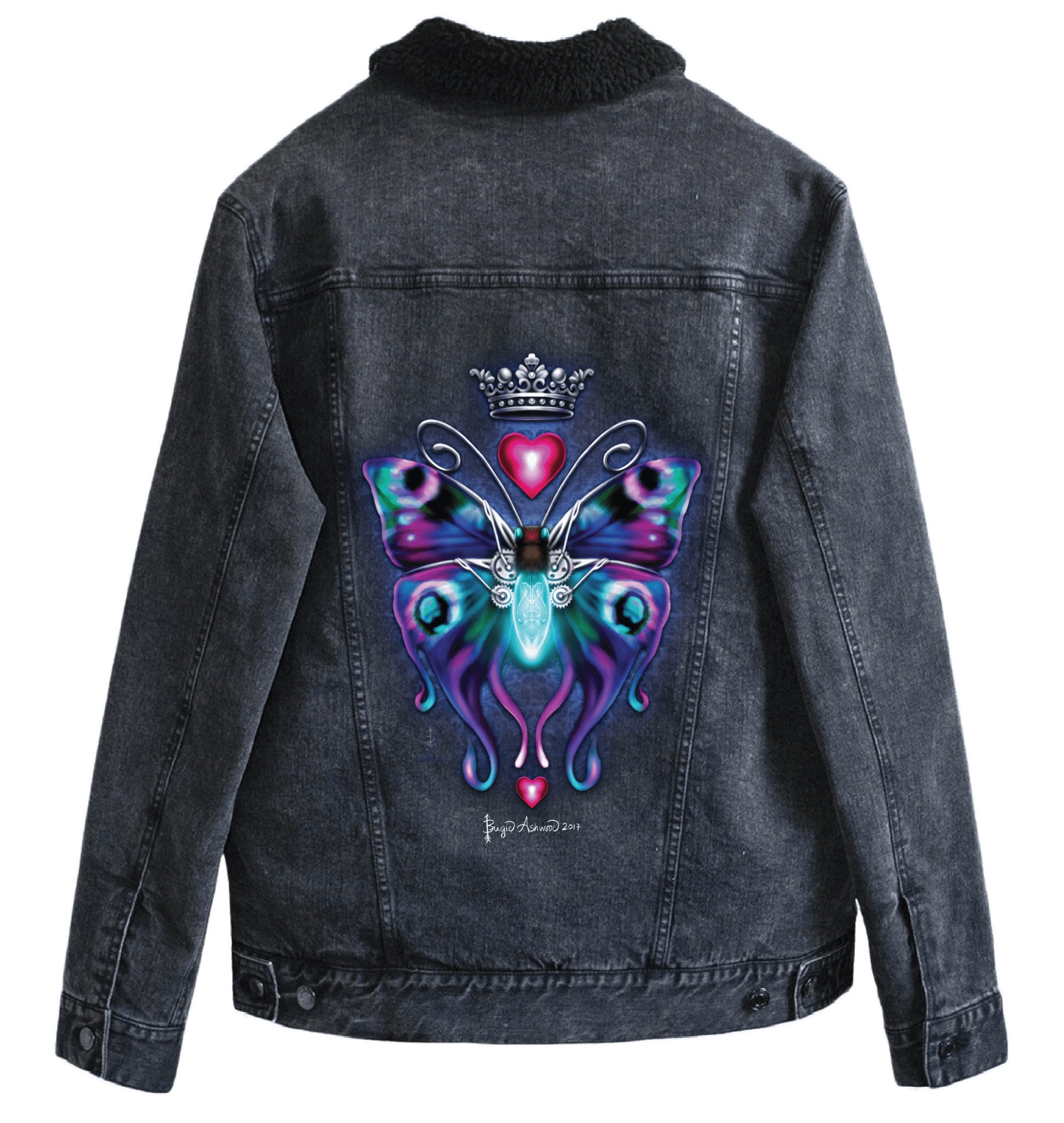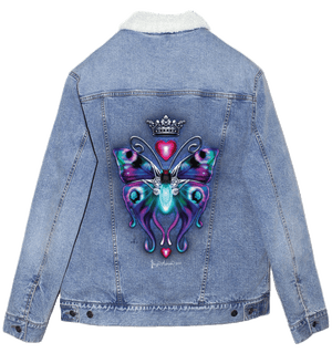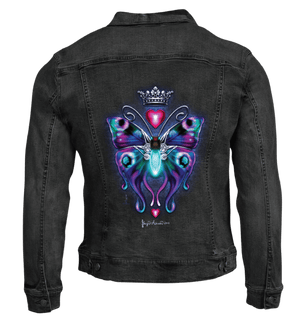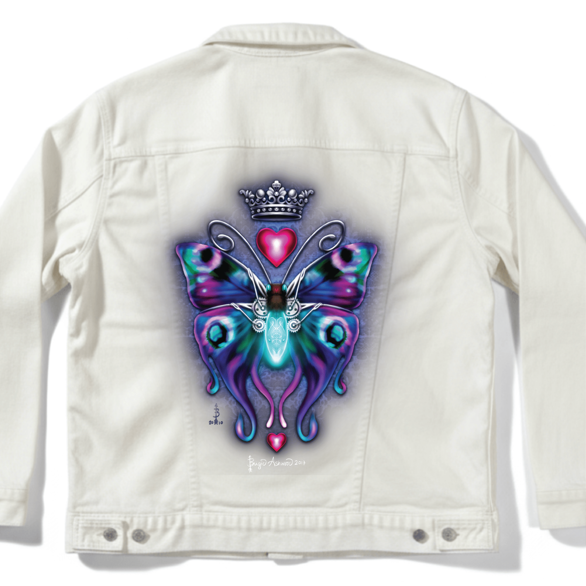 motifs stand out vividly, creating a clean, luminous contrast. On white denim, Steampunk Butterfly feels elegant and