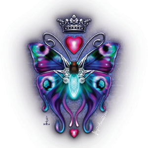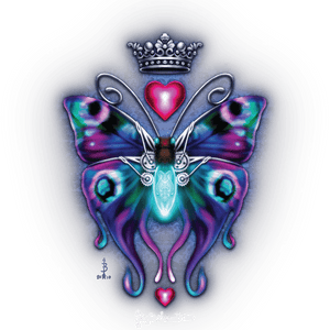 space above the butterfly’s head. Floating directly above is a silver crown,