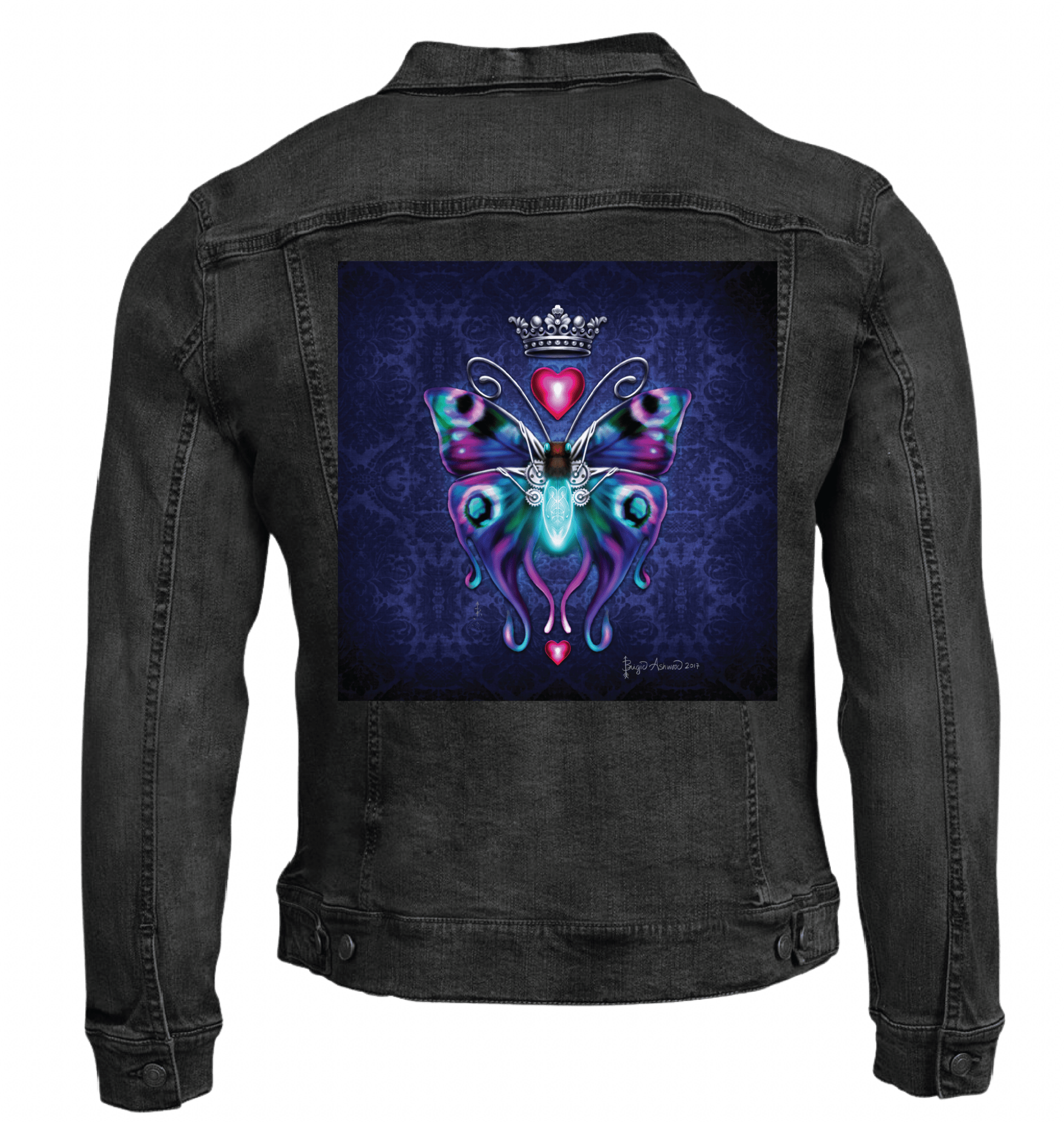 On black denim, the artwork becomes intimate and powerful. Steampunk