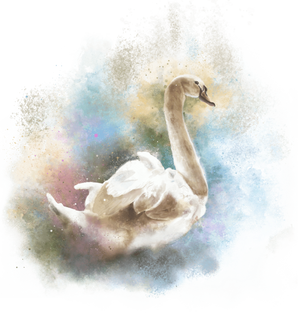 space. There is no defined waterline. Instead, the swan dissolves into a