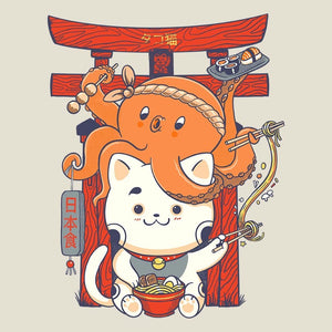 TAKO AND NEKO RESTRAUNT by Pepe Rodriguez aka PPMID, digitally printed on a hand-made Denim Jacket with 3 color choices: Stonewash, White, or Black. Unisex XS S M L XL 2X 3X