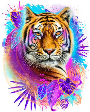 TIGER SPIRIT by SHEENA PIKE, digitally printed on a hand-made Denim Jacket with 3 color choices: Stonewash, White, or Black. Unisex XS S M L XL 2X 3X