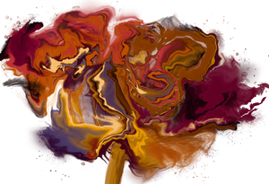 Gold and ochre tones appear heavier here, settling into wide, viscous bands