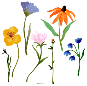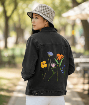 WILDFLOWERS by THEARTICSOUL, digitally printed on a hand-made Denim Jacket with 3 color choices: Stonewash, White, or Black. Unisex XS S M L XL 2X 3X