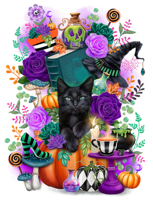 WITCHES COMPANION by SHEENA PIKE, digitally printed on a hand-made Denim Jacket with 3 color choices: Stonewash, White, or Black. Unisex XS S M L XL 2X 3X