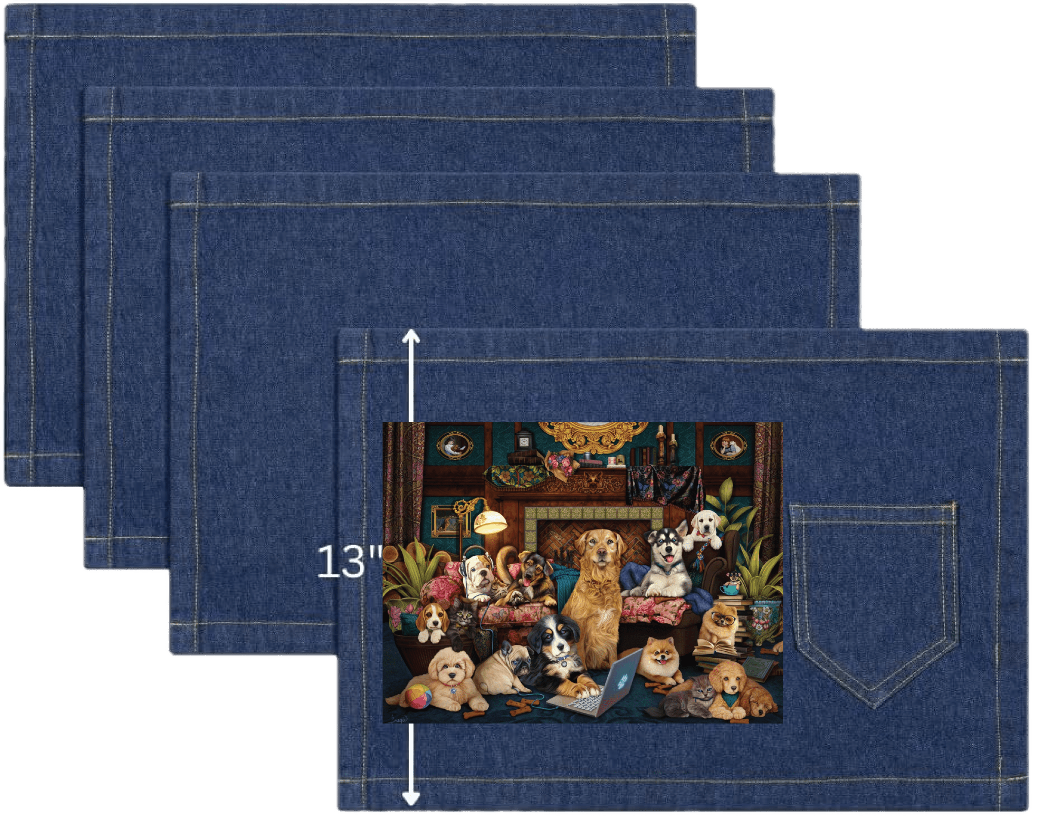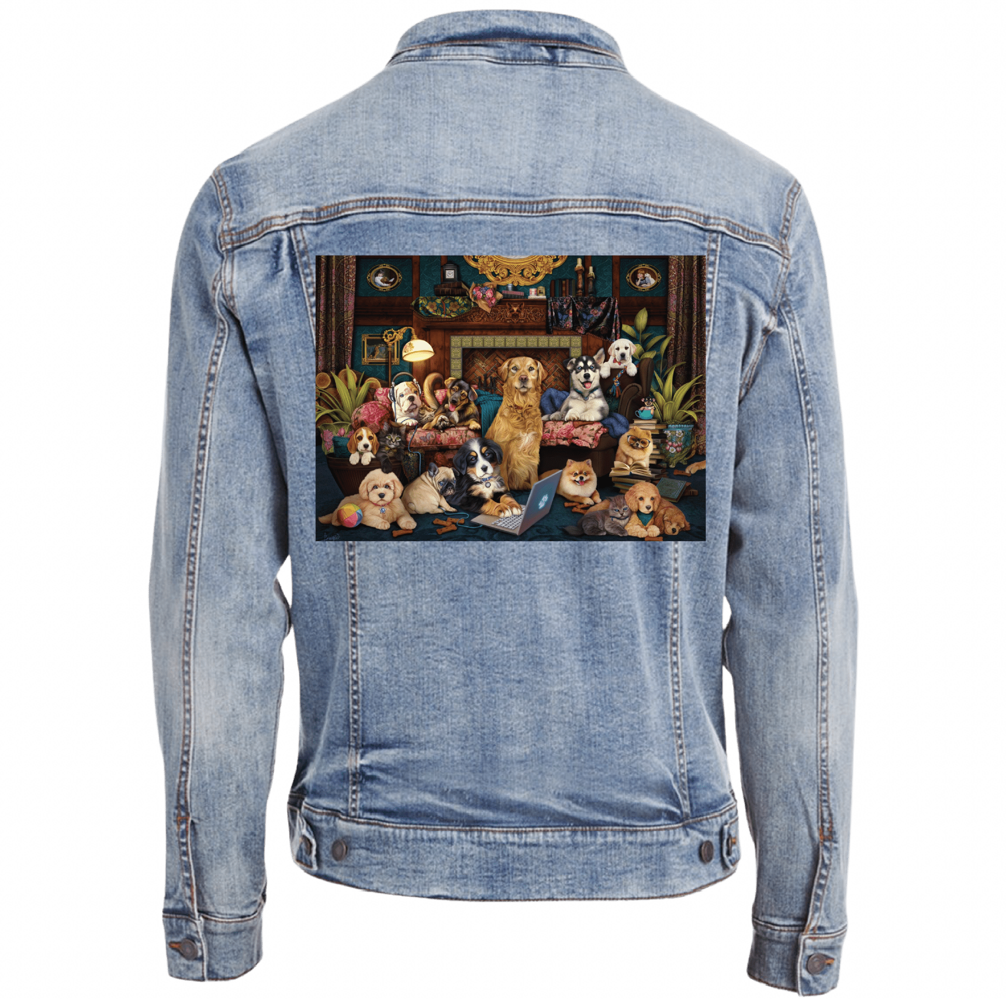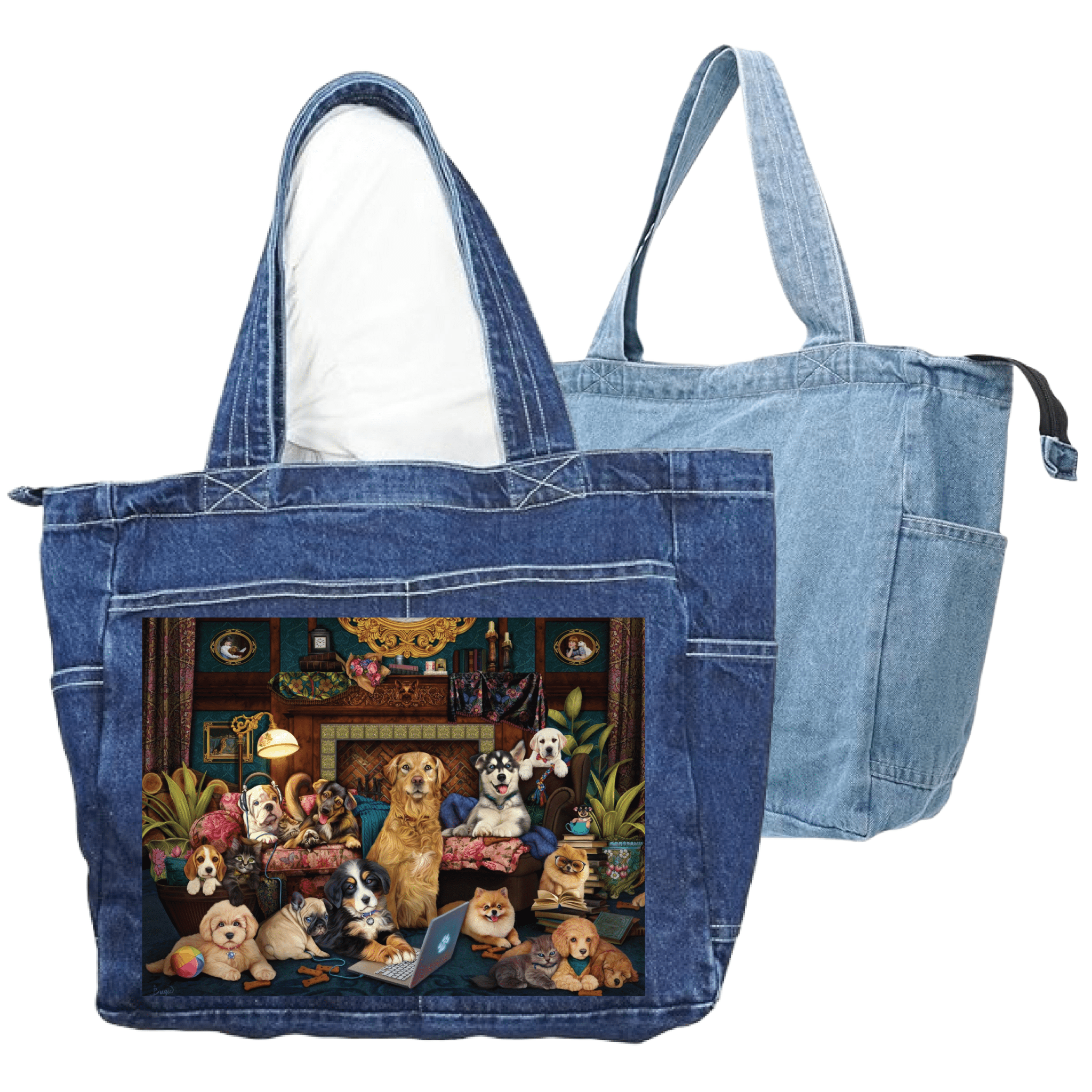 work-from-home humor and sense of togetherness. On black denim, the artwork