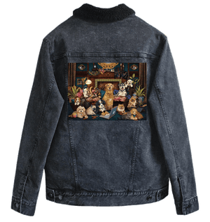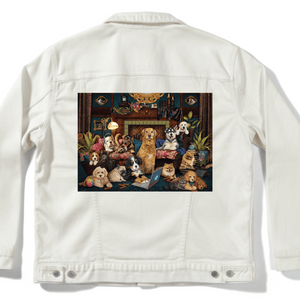 the jacket. The dogs’ fur textures and expressions remain clear but gently